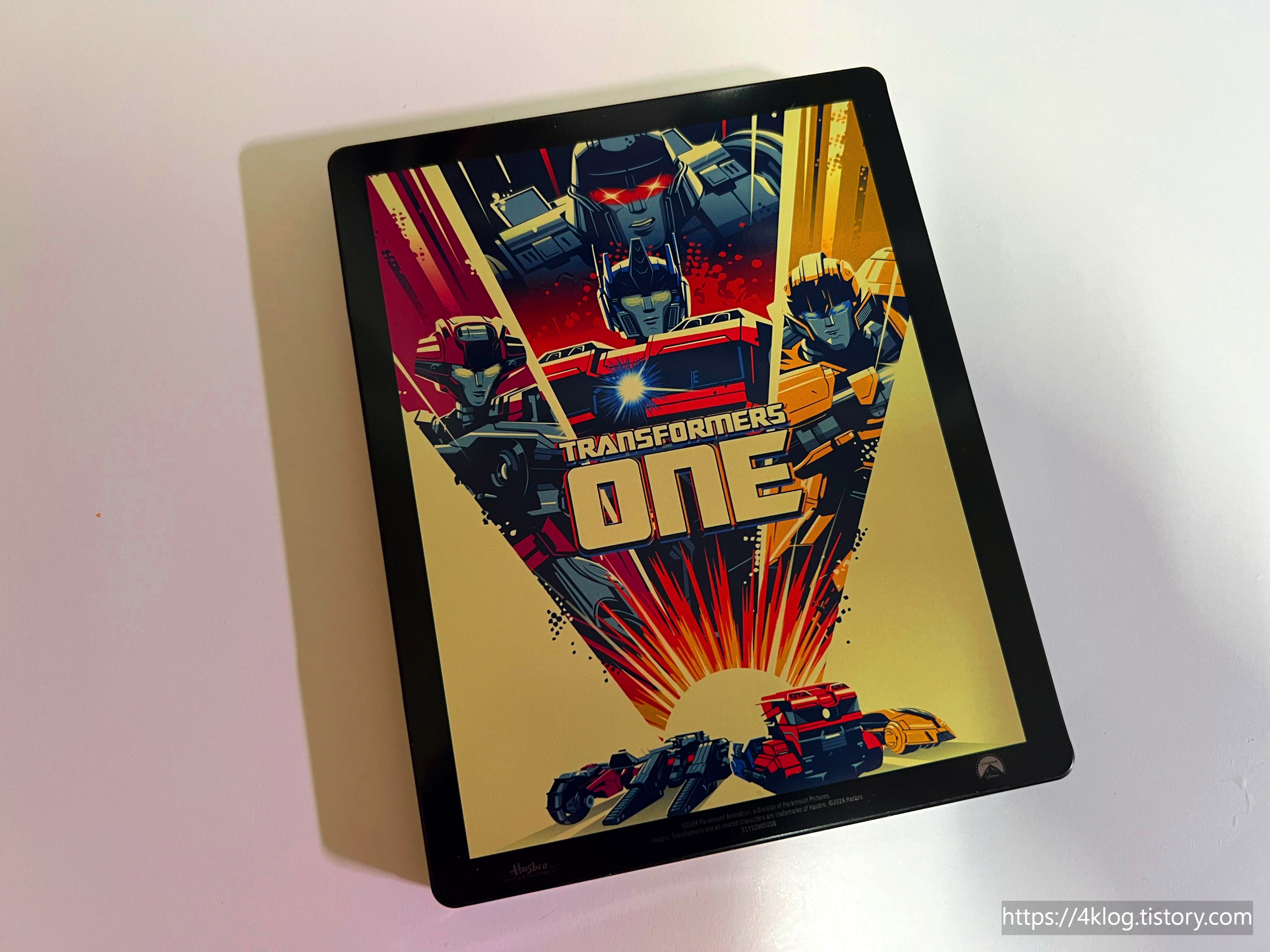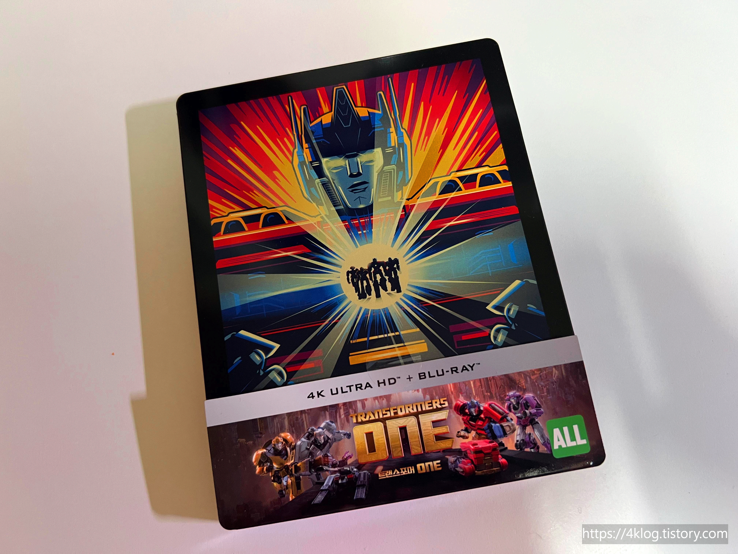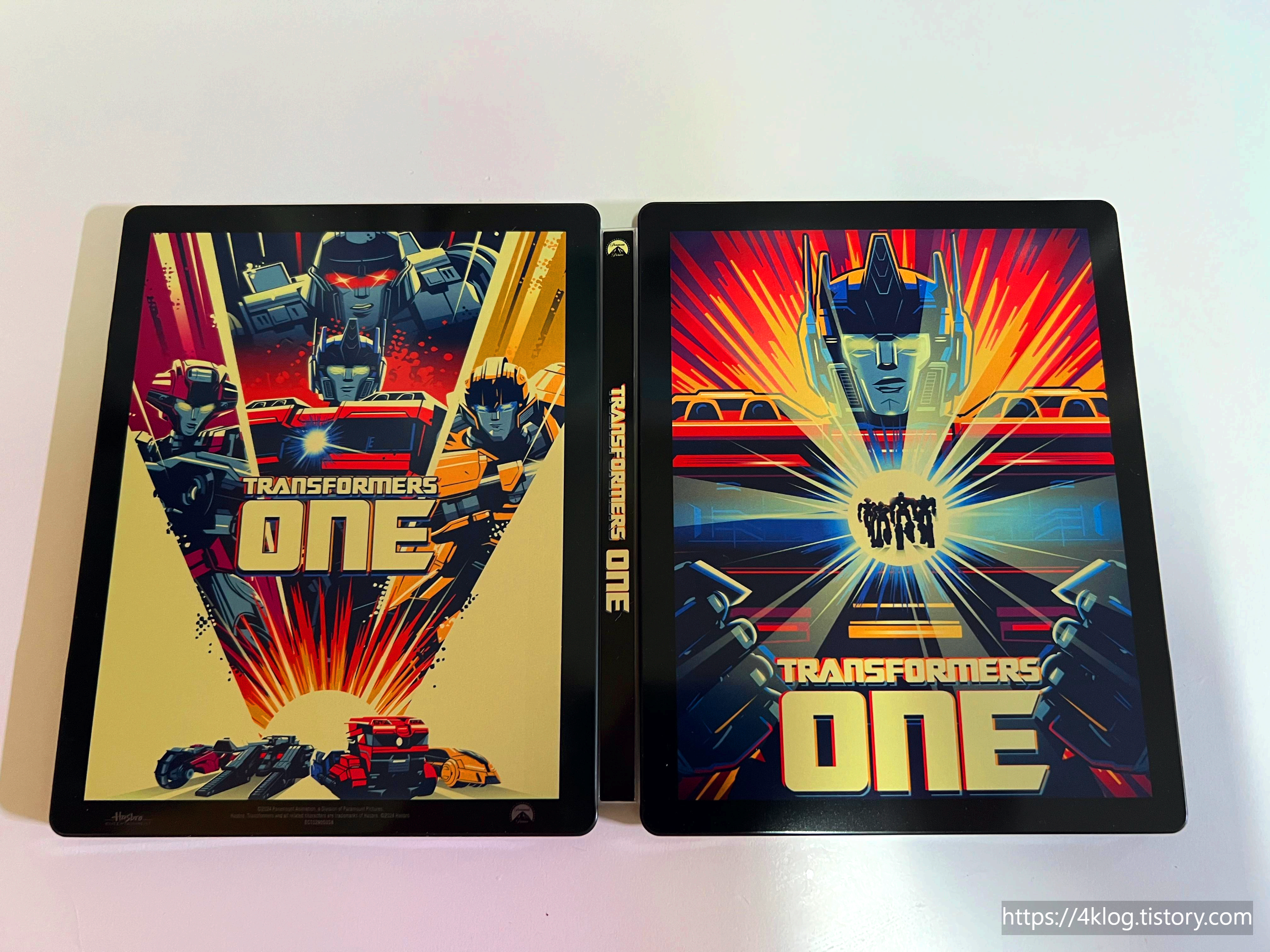 애니메이션으로 재구성된 옵티머스와 메가트론의 기원, 그리고 사이버트론의 전쟁을 그리고 있는 2024년판 『트랜스포머 원』은 시리즈의 리부트라기보단 기원을 탐사하는 오리진 스토리의 성격이 강하다. 파라마운트에서 발매한 이번 4K 스틸북은 고전적인 레트로풍 커버 아트와 함께 두 디스크 구성이며, 부가영상도 제법 풍성한 편이다.