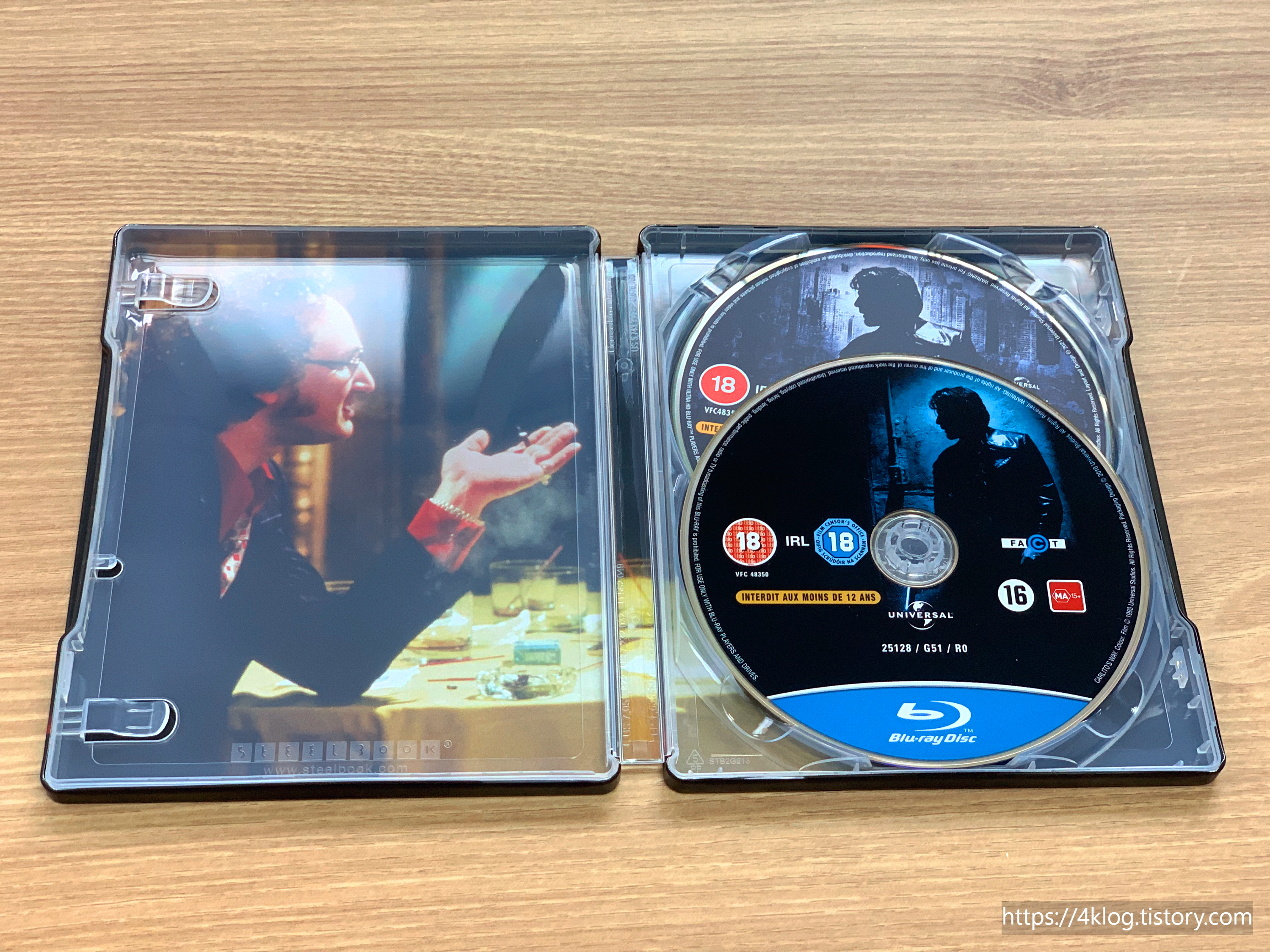 이번 국내 정발판은 슬립케이스 없이 스틸북 단독으로 구성되어 있다. 앞면에는 칼리토 역의 알 파치노와 숀 펜이 연기한 데이브의 이미지가 강렬한 붉은색 톤으로 인쇄되어 있는데, 영화의 비극성과 강렬함을 동시에 담아낸 디자인이다.