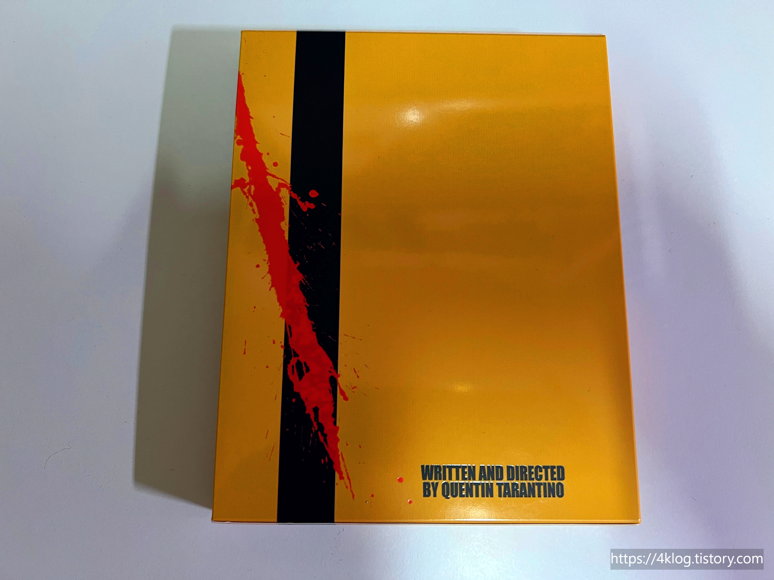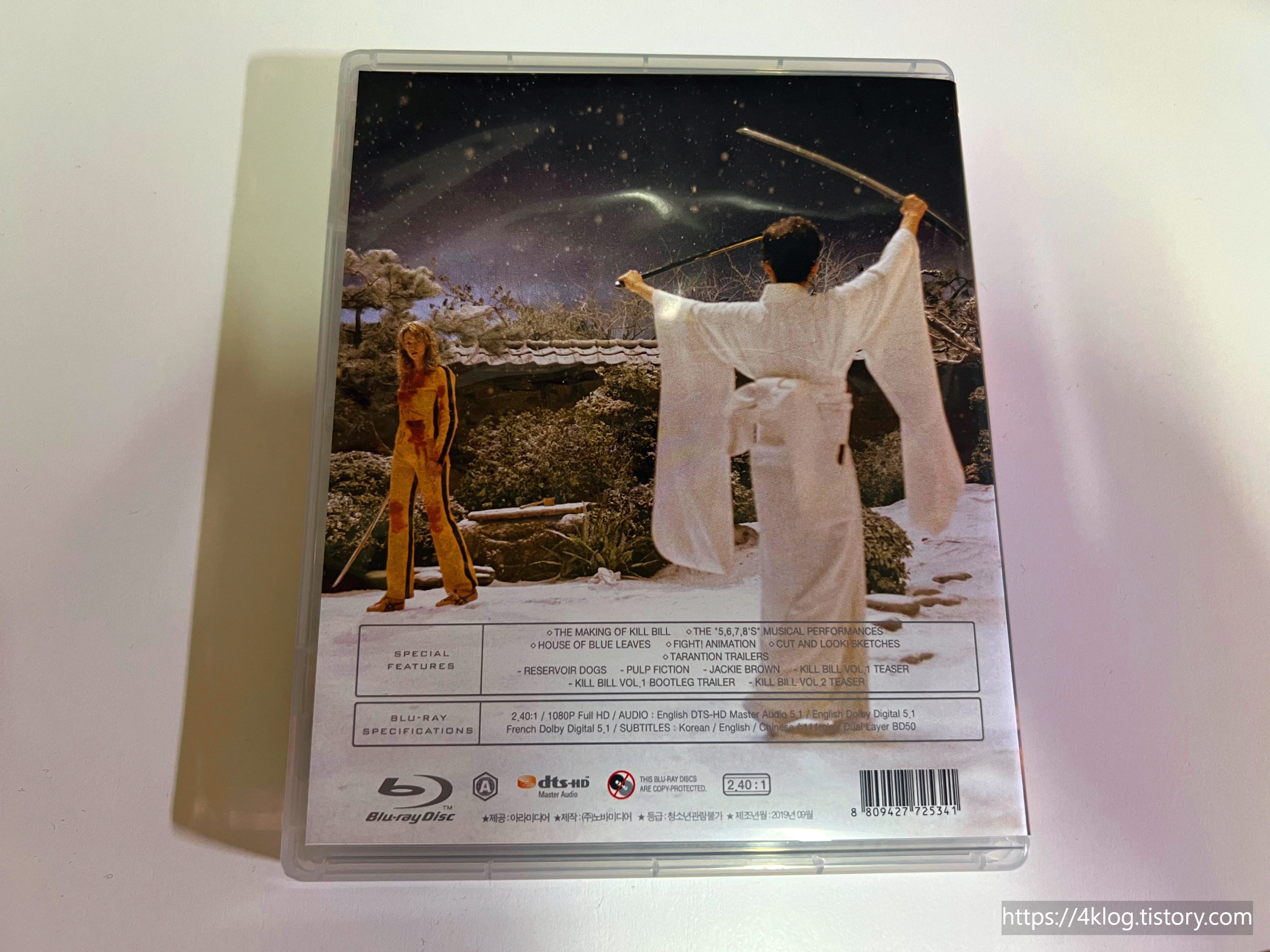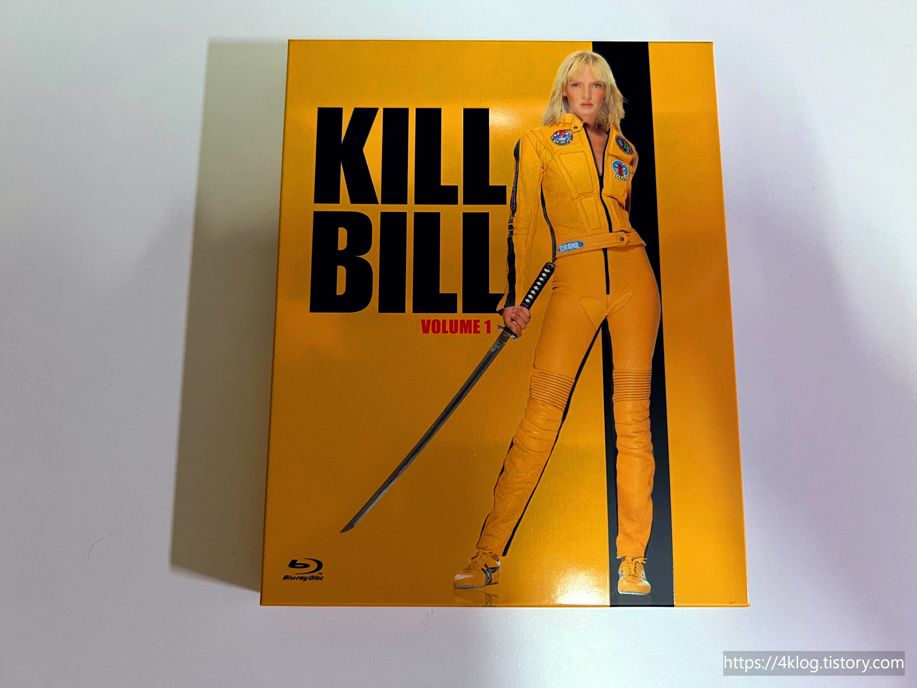 이번 일반판은 강렬한 옐로우 배경에 우마 서먼의 전신 이미지가 전면을 장식하고 있으며, 슬립케이스 후면에는 상징적인 검과 피의 디자인이 인상적이다. 내부 킵케이스와 디스크 프린팅 역시 킬 빌 특유의 감성이 잘 담겨 있으며, 인쇄물은 극중 액션 장면을 활용한 일러스트 형태의 소책자(단면)로 구성되어 있다.