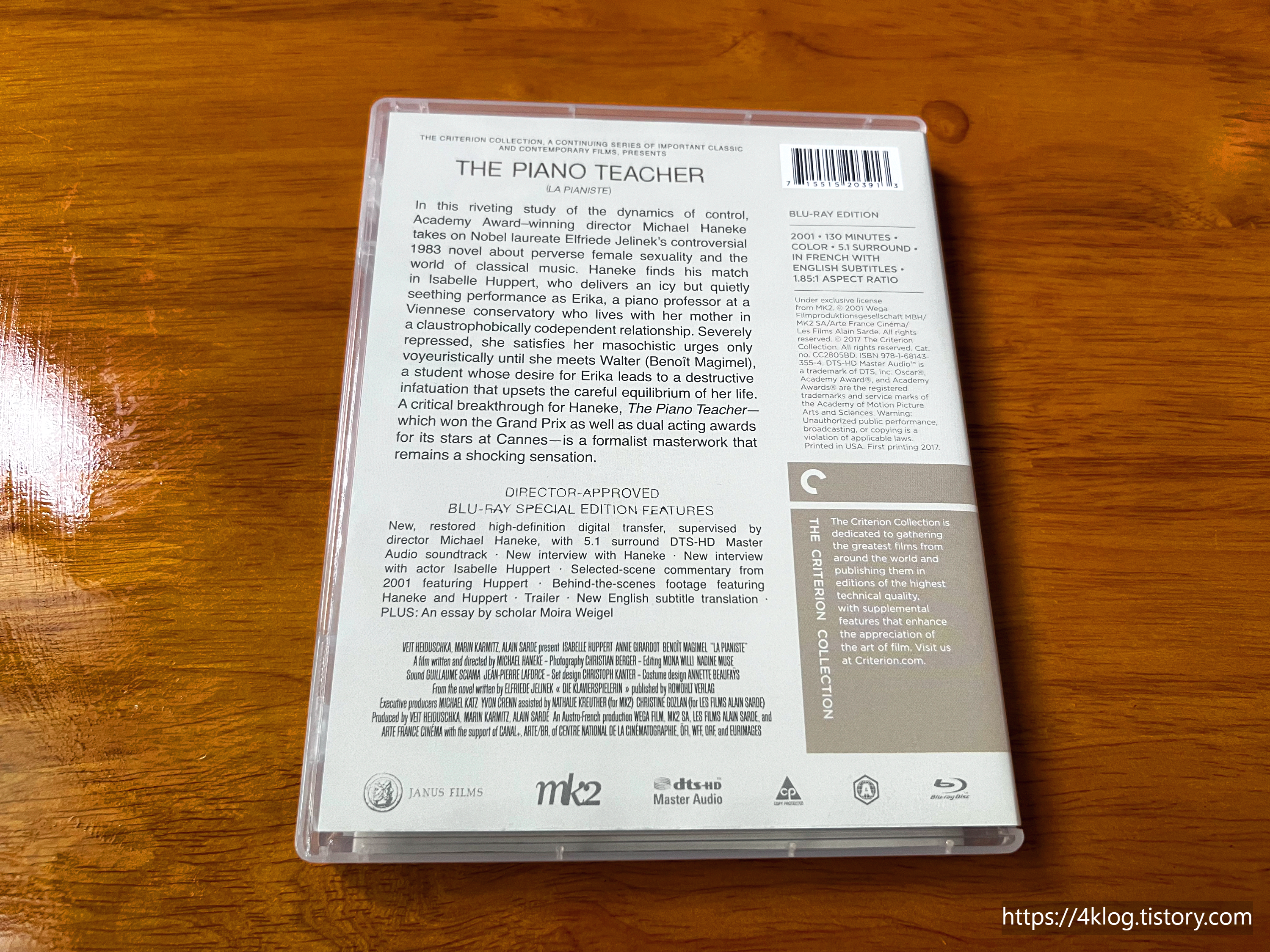 마이클 하네케 감독의 대표작 중 하나로, 크라이테리온의 고품질 영상과 음향을 통해 이자벨 위페르의 섬세한 연기를 더욱 생생하게 느낄 수 있다. 부가영상은 감독과 배우 인터뷰, 제작 현장 영상 등 영화의 제작 과정과 해석에 깊이를 더해주는 콘텐츠로 채워져 있어 소장 가치를 높힌다. 심리극과 음악영화를 좋아하는 관객에게 특히 추천할 만한 에디션이다.