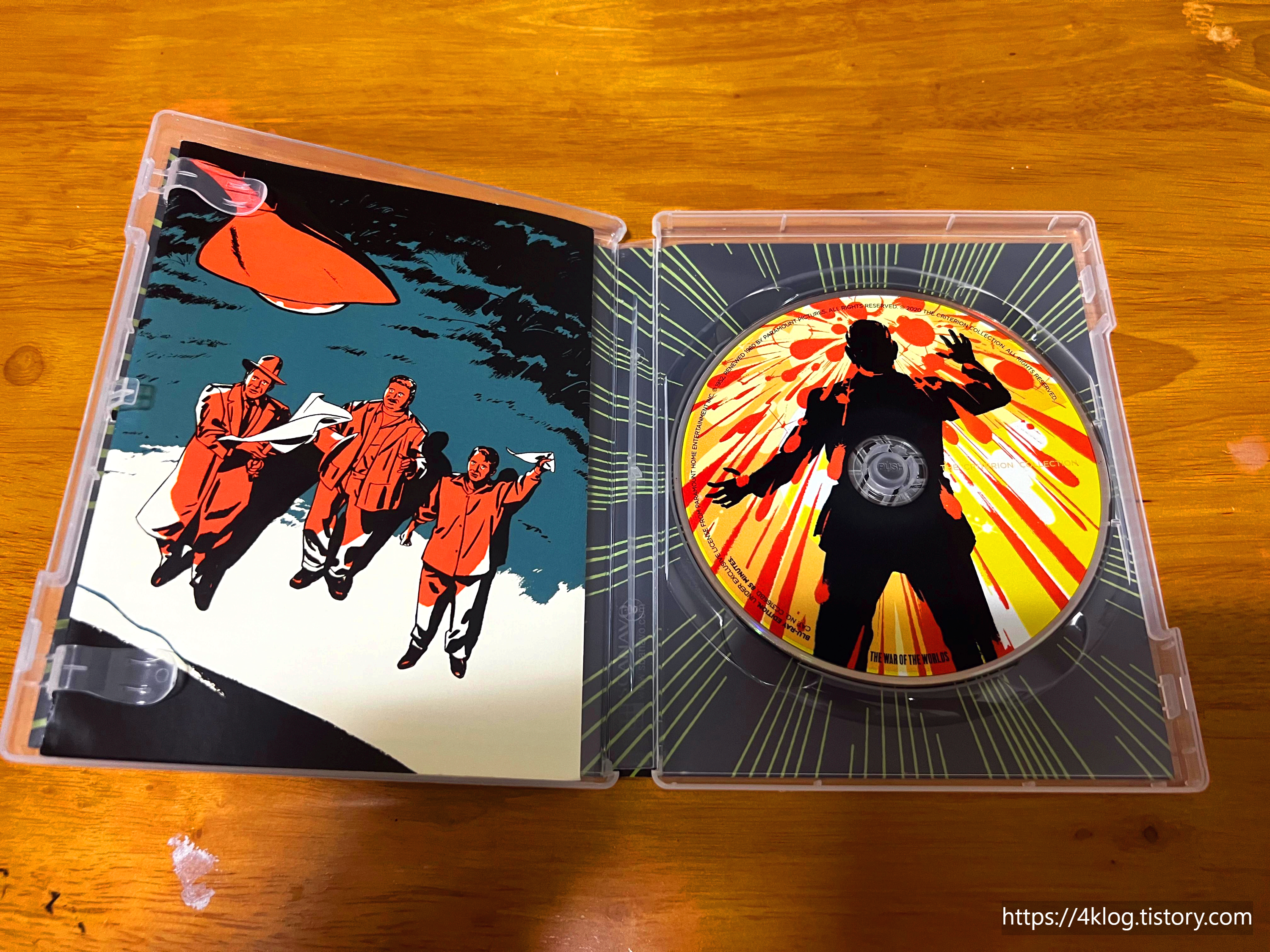 크라이테리온에서 출시한 『우주전쟁』은 특유의 일러스트 기반 슬림팩으로 구성되었으며, 전면은 레트로 SF 아트풍의 붉은 색상 일러스트, 후면은 상세 설명과 부가영상 정보가 노란 배경 위에 빼곡히 인쇄되어 있다.