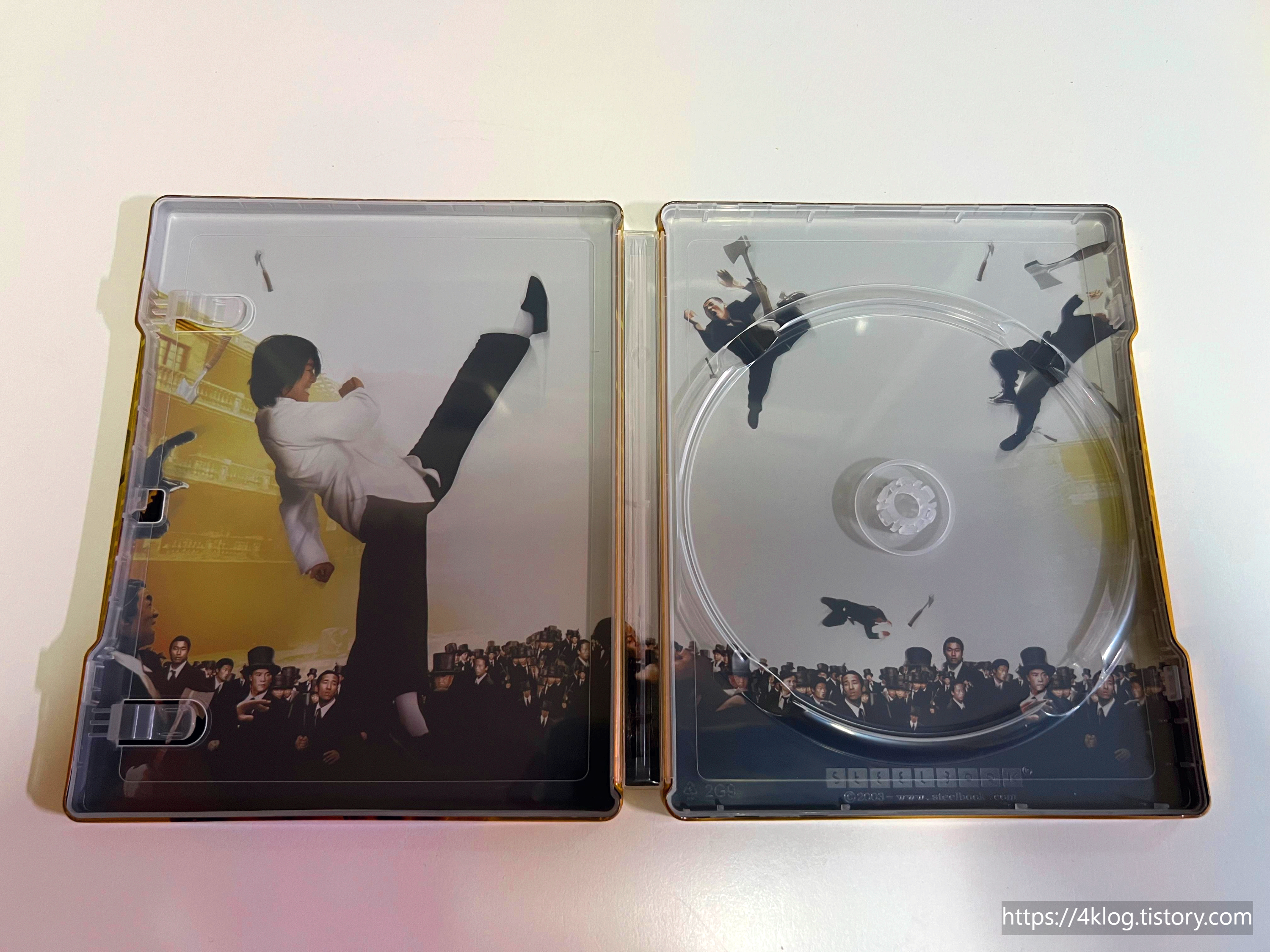 본 타이틀은 슬립케이스와 스틸북으로 구성된 한정판이다. 전면 커버에는 주성치가 연기한 주인공 ‘싱’의 강렬한 모습이, 후면에는 도끼파와 맞서는 고수 5인방의 유쾌한 일러스트가 인쇄되어 있다. 내부는 영화 후반부 하이킥 장면을 담은 아트워크가 삽입되어 있으며, 디스크 라벨 또한 전용 디자인으로 컬러 인쇄되었다. 별도 북클릿이나 엽서류는 포함되어 있지 않다.