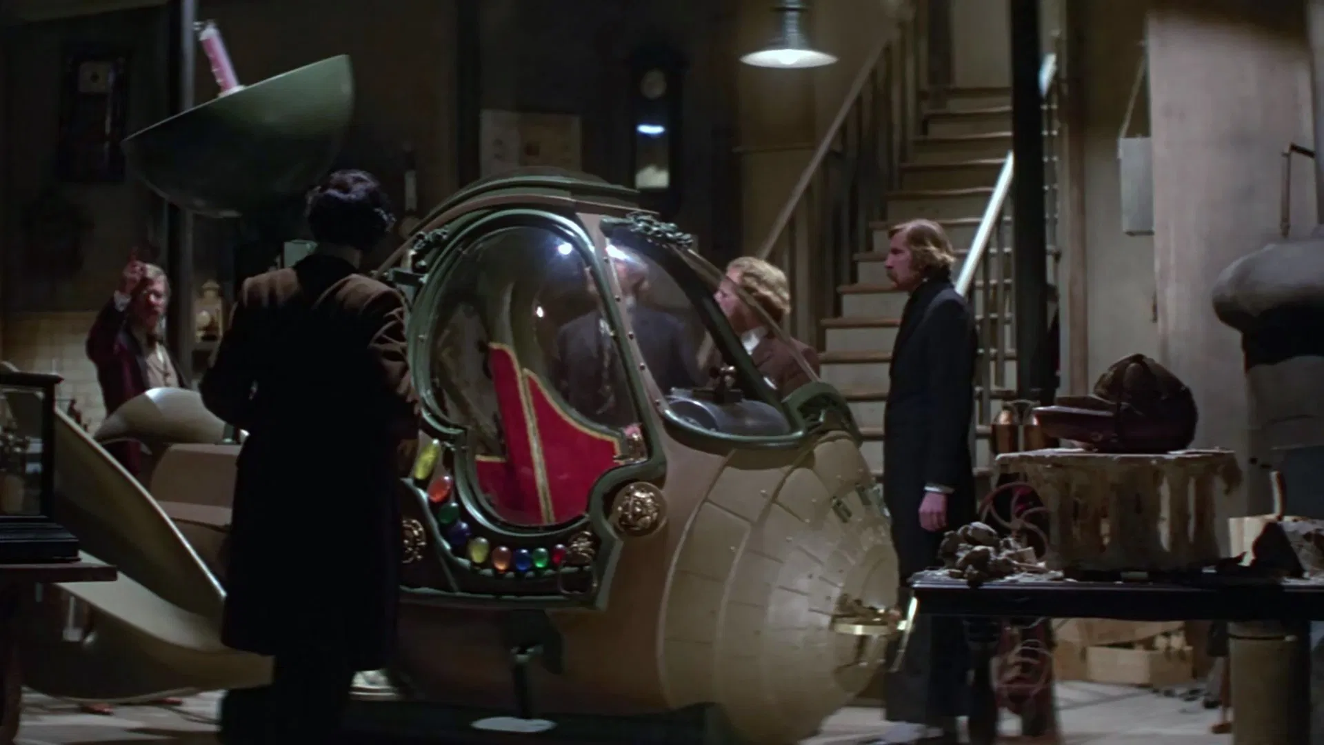 주인공 H.G. 웰스(말콤 맥도웰)는 우리가 잘 아는 『타임머신』의 원작자이자 실존 인물로, 영화 속에서 직접 타임머신을 만들어 미래 문명을 확인하려 한다. 그가 꿈꾸던 미래는 전쟁, 기아, 가난이 모두 해결된 낙원이었지만, 정작 그가 도착한 1979년의 현실은 이상향과는 거리가 멀다. 여전히 범죄와 폭력이 난무하고, 인간의 본성은 전혀 달라지지 않은 상태였으니까.