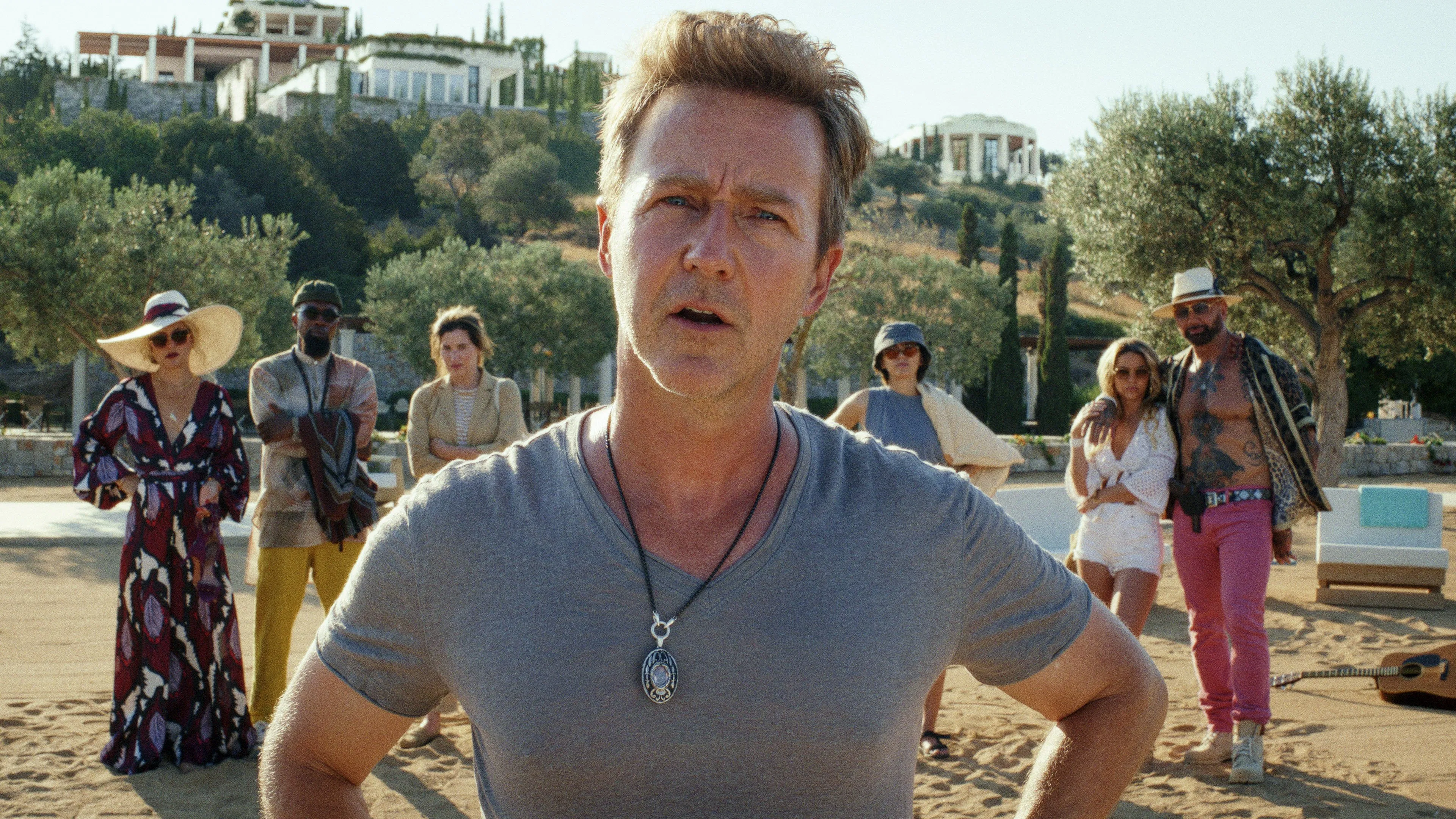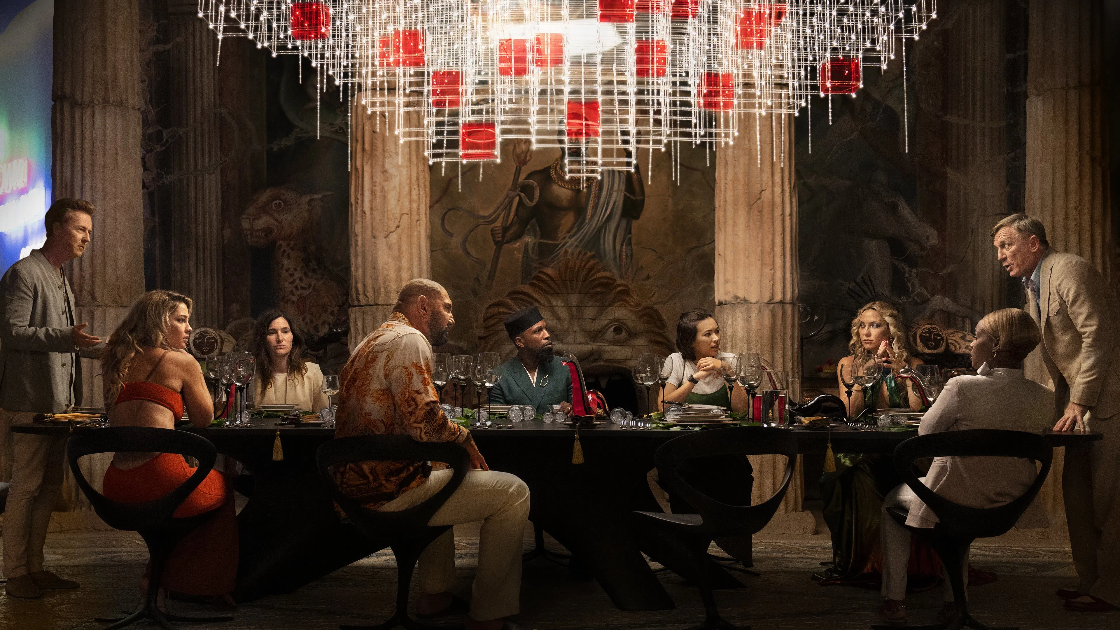 글래스 어니언: 나이브스 아웃 미스터리(2022)는 라이언 존슨 감독이 나이브스 아웃(2019)의 흥행 성공 이후 선보인 후속작이다. 넷플릭스 오리지널로 제작·공개되었으며, 화려한 캐스팅과 독창적인 구성으로 다시 한번 화제를 모았다. 전편이 한 저택에서 펼쳐진 전통적 살인 추리극의 변주였다면, 이번 작품은 무대를 지중해 그리스의 호화 저택으로 옮기며 풍자와 블랙 코미디의 색채를 한층 강화했다.