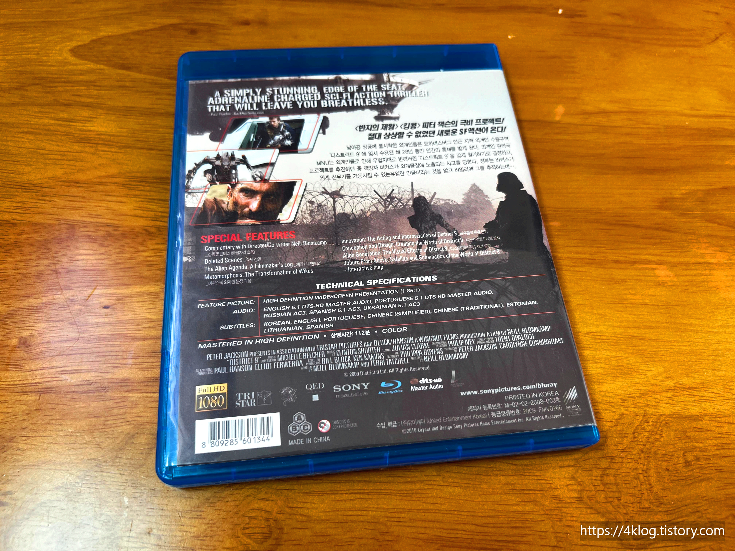 남아프리카공화국을 배경으로 외계인의 난민 문제를 SF라는 장르로 그려낸 수작. 사회적 은유와 액션의 균형이 돋보이며, 저예산으로 제작된 점이 믿기지 않을 만큼 완성도 높은 CG와 편집이 인상적이다. 중고 구매였지만 상태가 양호한 편이라 소장용으로 충분하며, 부가영상도 제법 충실하게 수록되어 있어 만족스러운 구성이다.