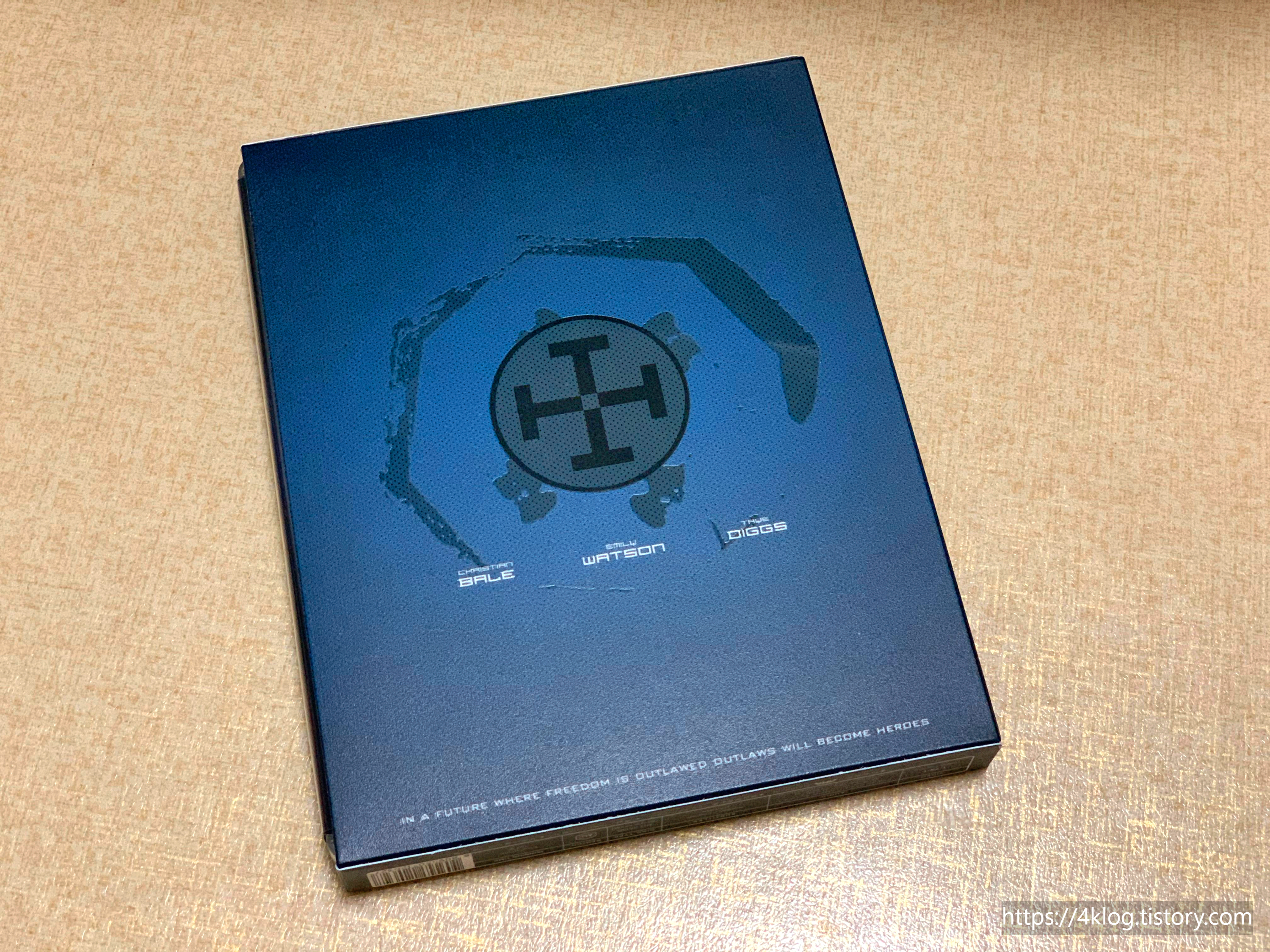 풀슬립 한정판 패키지로 발매된 이번 타이틀은 블랙톤의 사이버 감성 디자인을 강조한 슬립케이스에 본편 디스크 1장이 수록되어 있으며, 북클릿과 엽서가 동봉되어 있다. 슬립 전면에는 크리스찬 베일의 총기 액션 실루엣이 인쇄되어 있으며, 후면은 핵심 설정을 요약하는 문구와 이미지로 구성되어 있다. 북클릿은 작품의 세계관, 캐릭터, 촬영 콘셉트 등을 간단히 소개하고 있으며, 엽서 이미지 역시 영화의 상징적인 장면이 실려 있다.