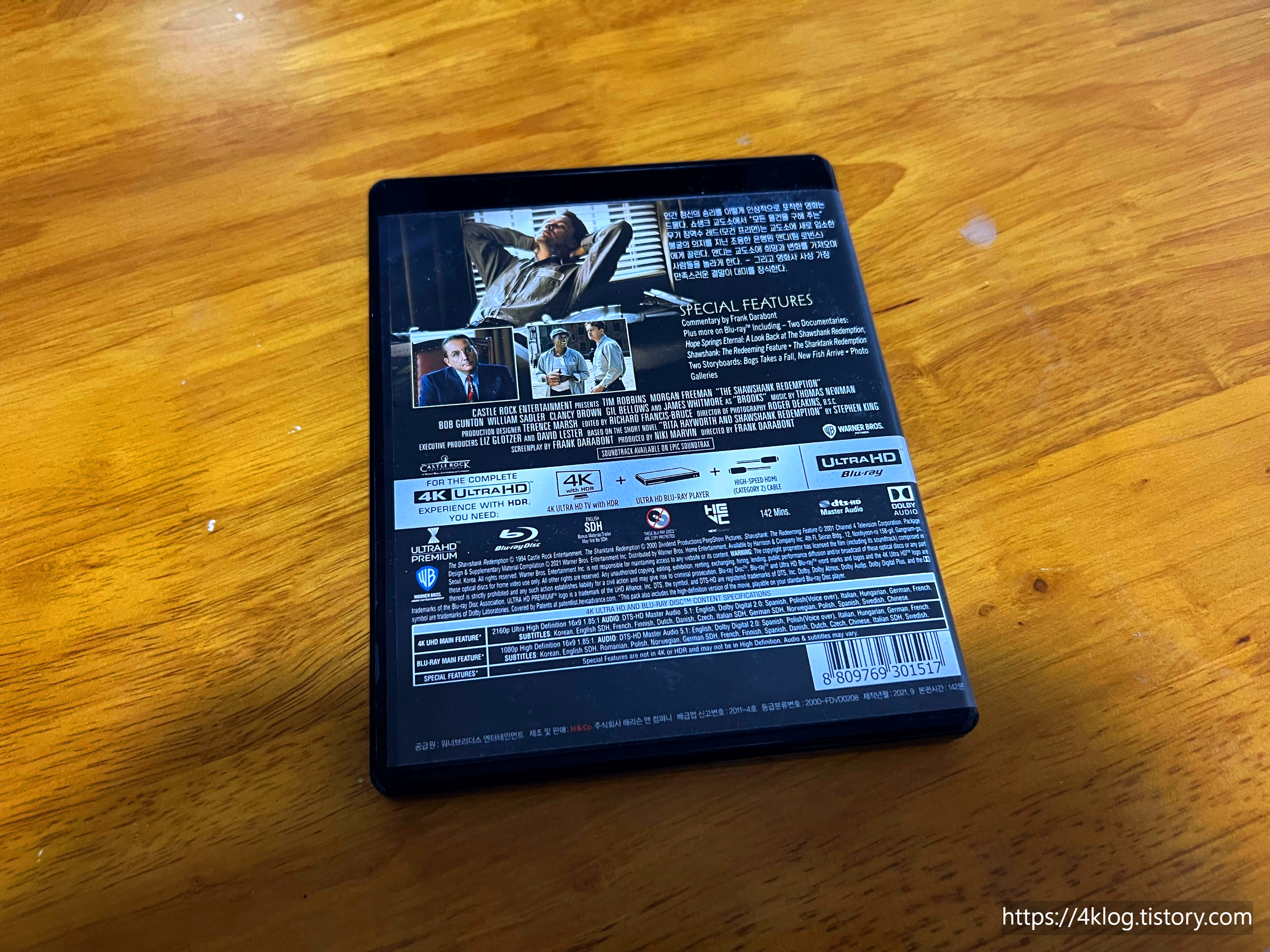 명실상부 최고의 드라마로 손꼽히는 명작 『쇼생크 탈출』을 4K로 다시 만날 수 있다는 점만으로도 의미가 크다. 영상은 HDR10 기반의 리마스터로 디테일이 살아 있고, 사운드 역시 DTS-HD MA 5.1 트랙으로 극적인 장면에서의 몰입도를 배가시킨다. 부가영상도 충실히 수록되어 있으며, 특히 프랭크 다라본트 감독의 음성해설은 영화의 제작 뒷이야기를 엿볼 수 있는 귀중한 자료다. 별도의 한정판은 아니지만, 필구 타이틀로 강력히 추천한다.