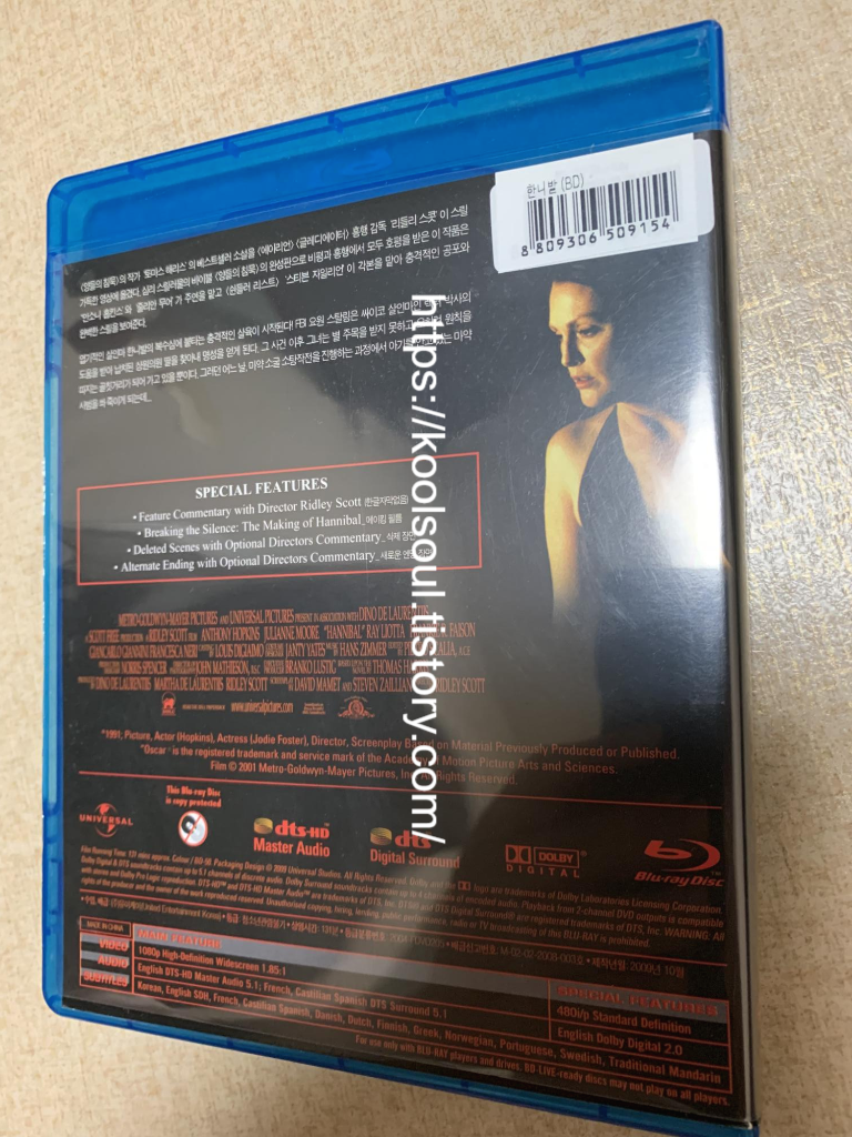 '양들의 침묵' 그 10년 후를 그린 리들리 스콧 감독의 문제작, '한니발' 블루레이 개봉기입니다. 안소니 홉킨스의 압도적인 연기와 피렌체의 고풍스러운 풍광이 어우러진 이 스릴러는, 유니버설(Universal) 특유의 깔끔한 스탠다드 패키지로 출시되었습니다.