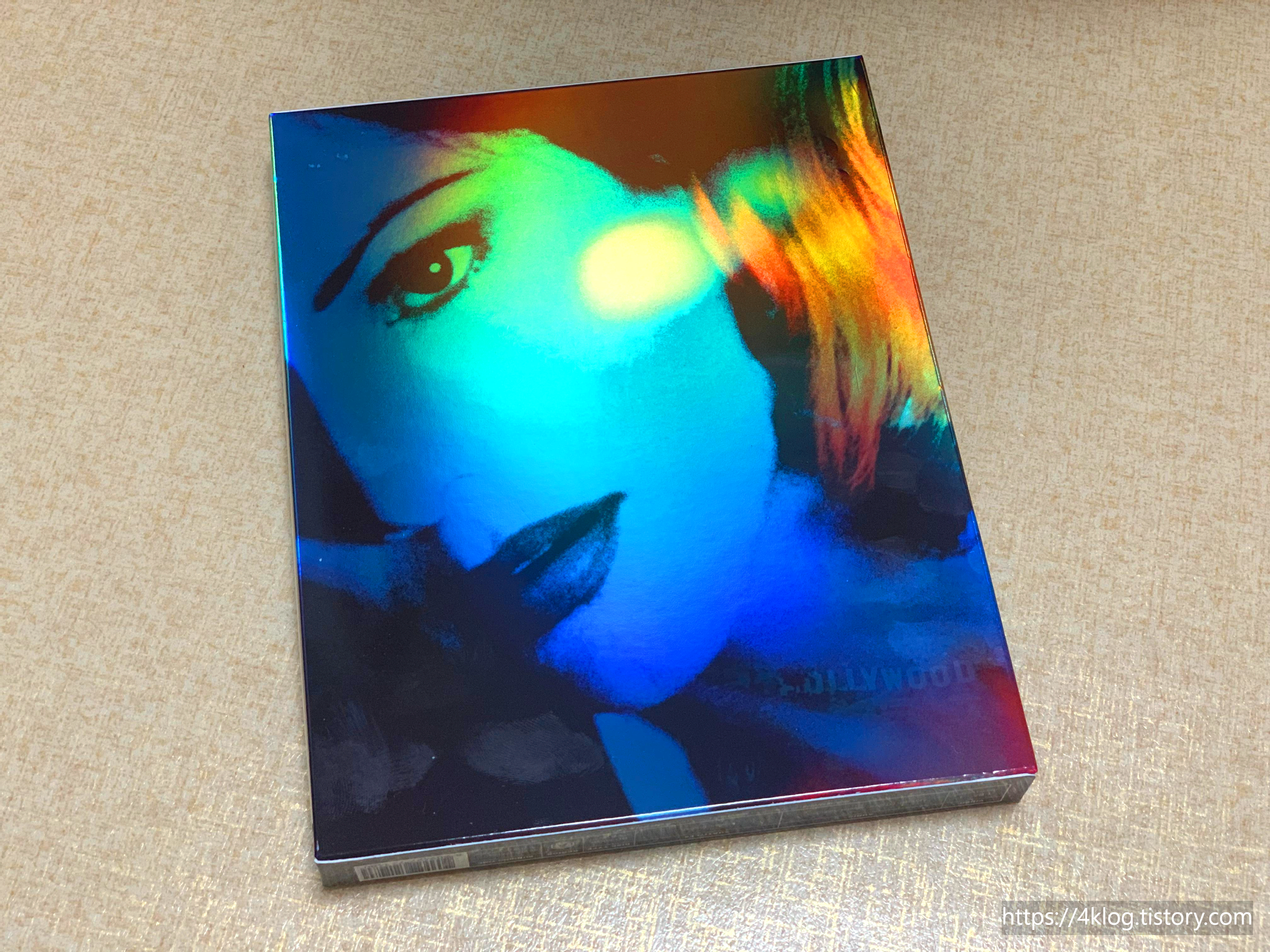 킵케이스 전면에는 영화 속 인물의 공포 어린 표정과 ‘HOLLYWOOD’ 표지가 겹쳐 있다. 이미지의 배치는 다소 직설적이지만, 영화의 혼란스러운 주제를 꽤 잘 반영하고 있다.