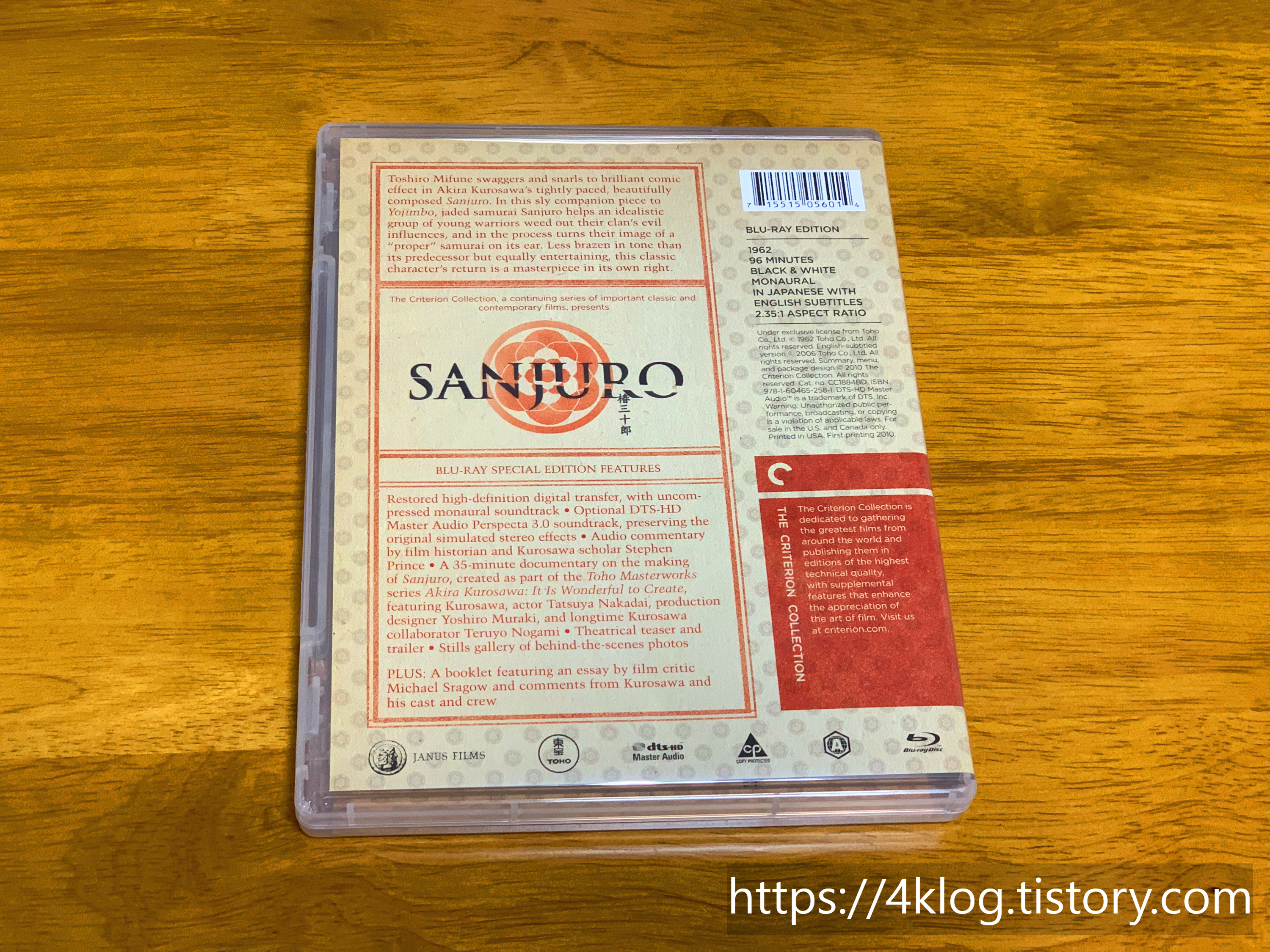 『요짐보』의 유쾌한 속편으로 기억되는 『산주로』는 무게감을 덜고 오히려 날렵해진 구로사와 사무라이 영화의 또다른 정점이다. 2010년 출시된 이 블루레이는 뛰어난 화질 복원과 함께, 3채널 오디오 구성(DTS-HD MA 3.0)을 제공해 극장 음향처럼 입체적으로 감상할 수 있다.