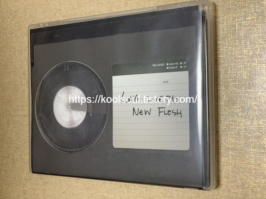 - 케이스 아트: 이 패키지의 하이라이트입니다. 슬립박스를 벗기면 투명 케이스 안에 '베타맥스(Betamax) 비디오테이프'가 들어있는 듯한 착시를 일으키는 아트워크가 나옵니다. 라벨지에는 영화의 명대사인 "Long live the New Flesh"가 손글씨로 적혀 있어, 마치 영화 속 비디오드롬 테이프를 실제로 입수한 듯한 전율을 줍니다.