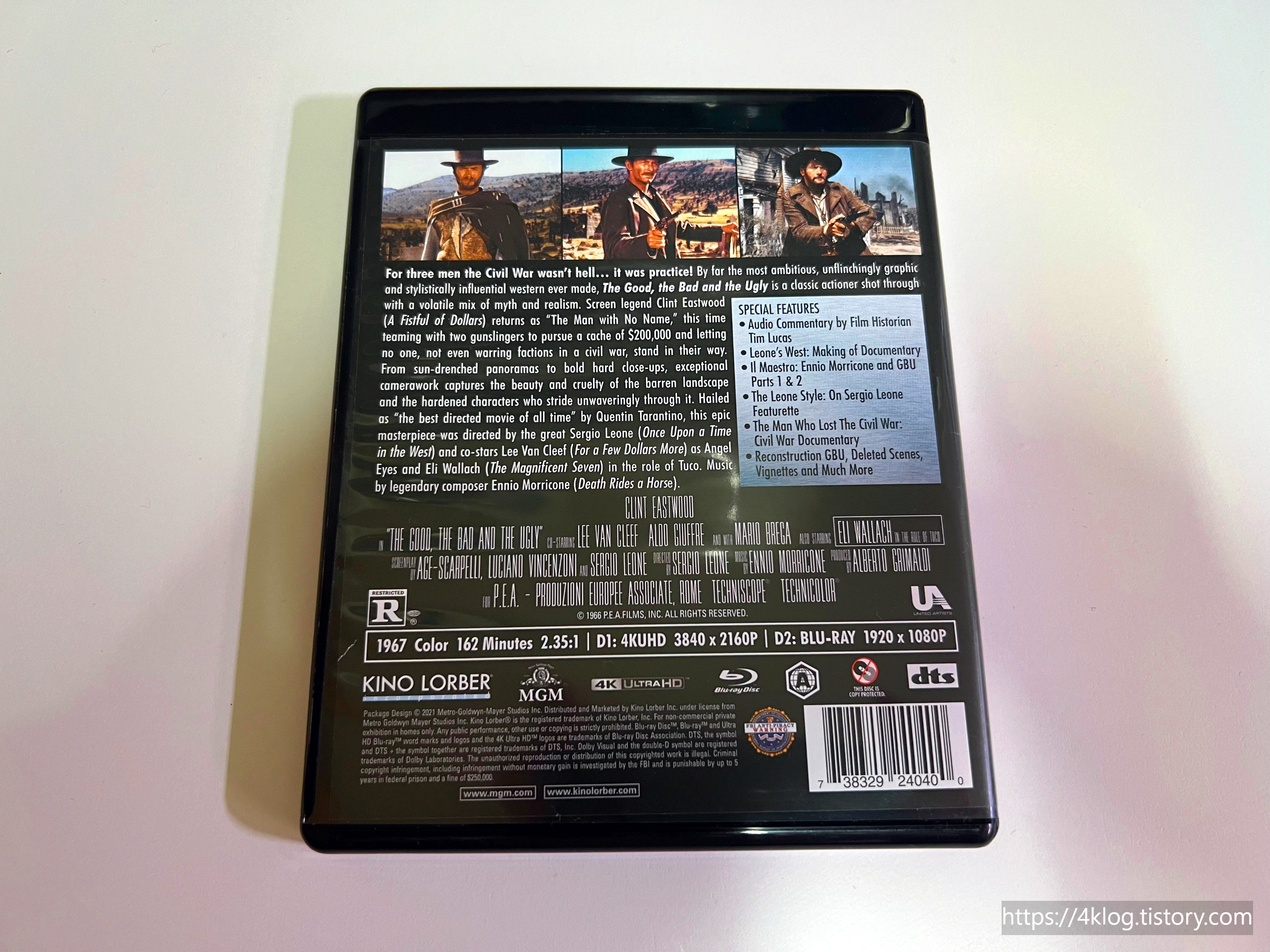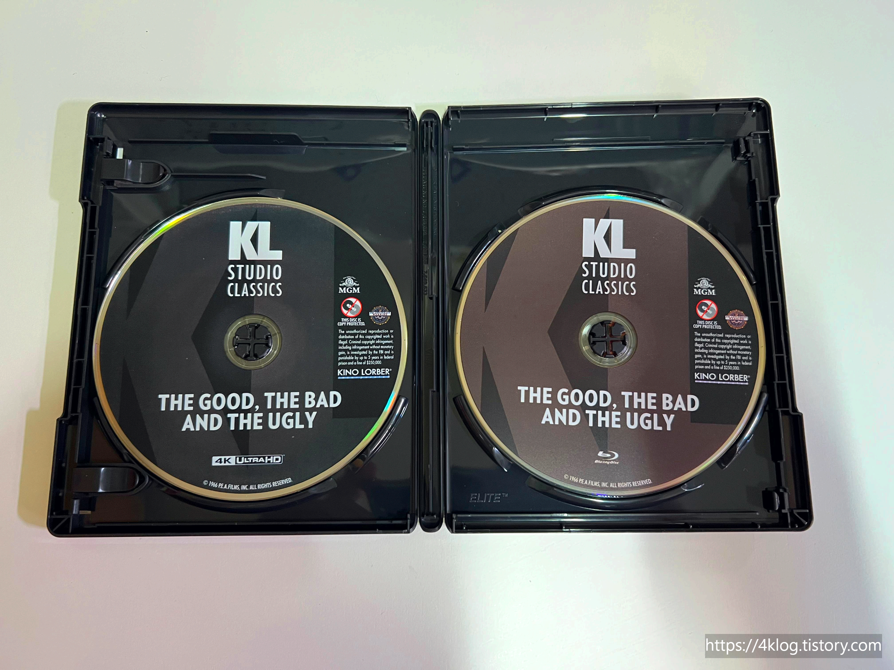 - 우측 (4K UHD): 본편이 수록된 고용량 디스크로, KL STUDIO CLASSICS 로고와 함께 심플하게 디자인되었습니다.
